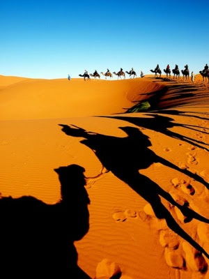 Avec une caravane de dromadaires, la découverte des oasis et dunes de l'Erg Chebbi. Entre Merzouga, HassiLabiad une aventure de découverte des espaces dunaires du Désert du sud marocain...