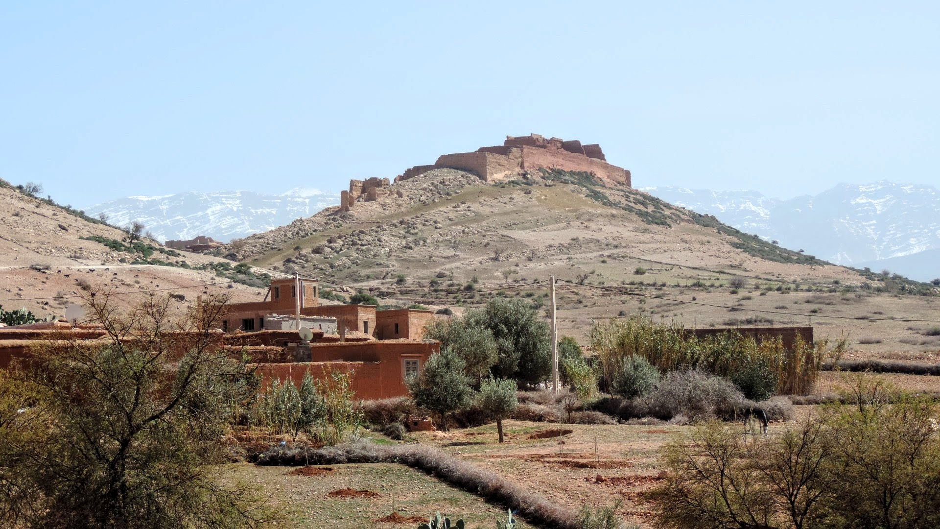 Une montée soutenue permet d’atteindre la crête du Lekst. Le sentier des bergers est à peine tracé entre chênes verts, prairies d’altitude, éperons rocheux. Avec de la chance et de la discrétion, il est possible de surprendre quelques gazelles de Cuvier qui vivent encore dans ce massif. Vue splendide sur l’ensemble du massif, le Haut-Atlas, le Siroua, le grand Sud et Tafraoute. Longue descente sur Anergui puis Anamer. Installation de notre bivouac prés de village. 7 h de marche. M : 760 m - D : 1360 m.